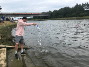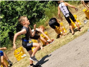 Emilia: A swim, bike, run which is a triathlon. I had to swim 2 lengths (100m) of the pool with 3 other people in the lane. We had to swim on the right side so we didn’t crash. We had to get out and take off our hat and goggles. I ran to my bike on put on my shoes, number belt and helmet. I grabbed my bike and went on a 3k bike ride. It was on closed roads and it was fun. Then I had to jump off my bike, take off my helmet, swivel round my number and then run around a volleyball court and over the finish line. It was exciting and fun.