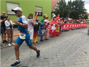 The run was no different really, with crowds packed through the centre of Roth and out to the canal, and then out the other side towards Buchenbach. I think this is one of my favourite places on the course. To me it’s like the Solarer Berg of the run course! It’s mental. You emerge from a rolling few kilometres through the woods, to this wall of noise as you run down into this little village. Centre piece is the pond, and with the packed crowds and noise, it’s almost like you get catapulted around here, and flung back towards the finish.