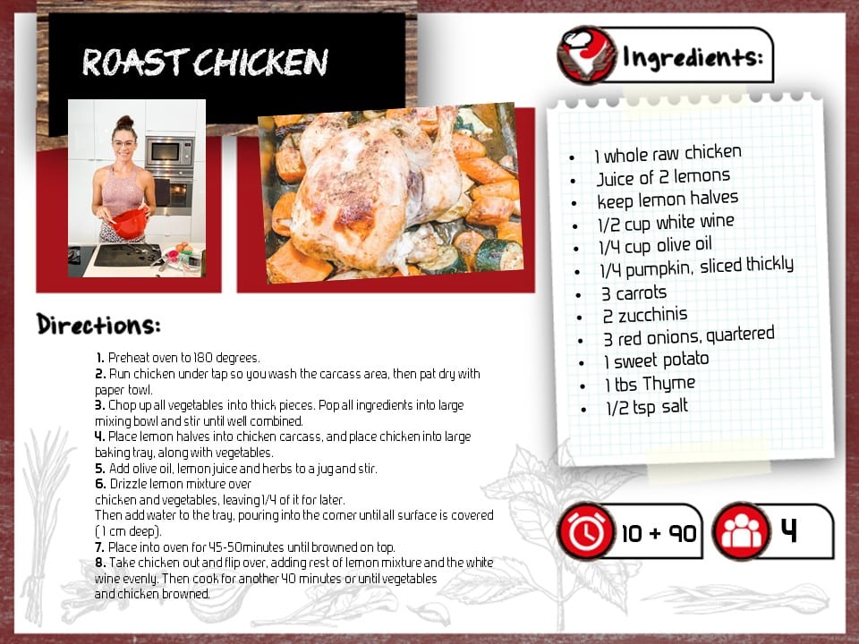This Cooking Tutorial guides shows you how to make nonna’s delicious roast chicken in under 10 minutes (without baking time). Put on your favourite tunes, and enjoy cooking along with Jaimielle as she shares her delicious and healthy roast chicken recipe!