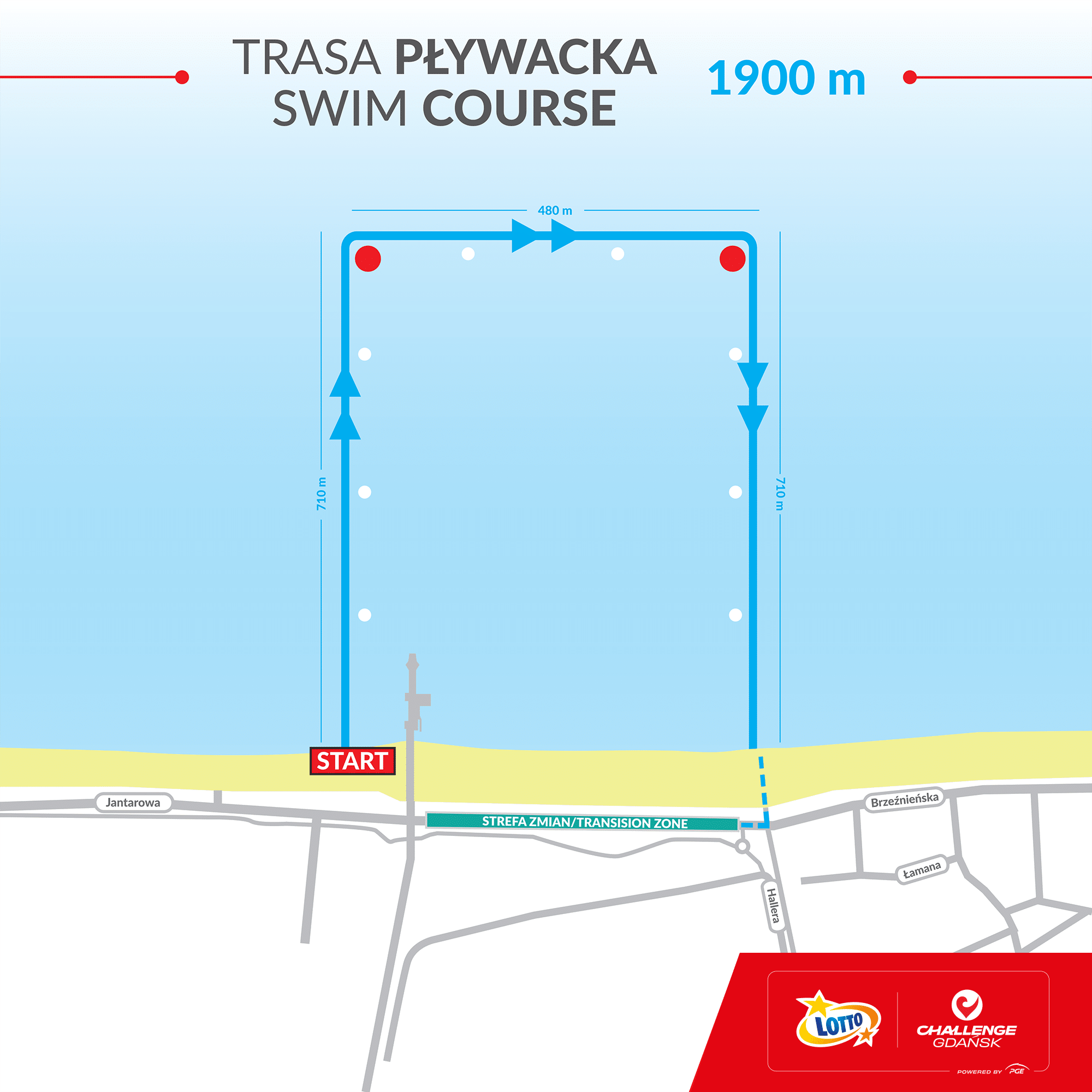 Beautiful location at the Baltic Sea, lighting fast and flat bike course and a breathtaking finish on the beautiful city pier. Athletes will start their race on the shores of the Baltic Sea, while the bike course consists of one flat and fast lap. The run course takes athletes along the beautiful Gdańsk beach, while the finish line becomes a real highlight on the Gdańsk Pier.